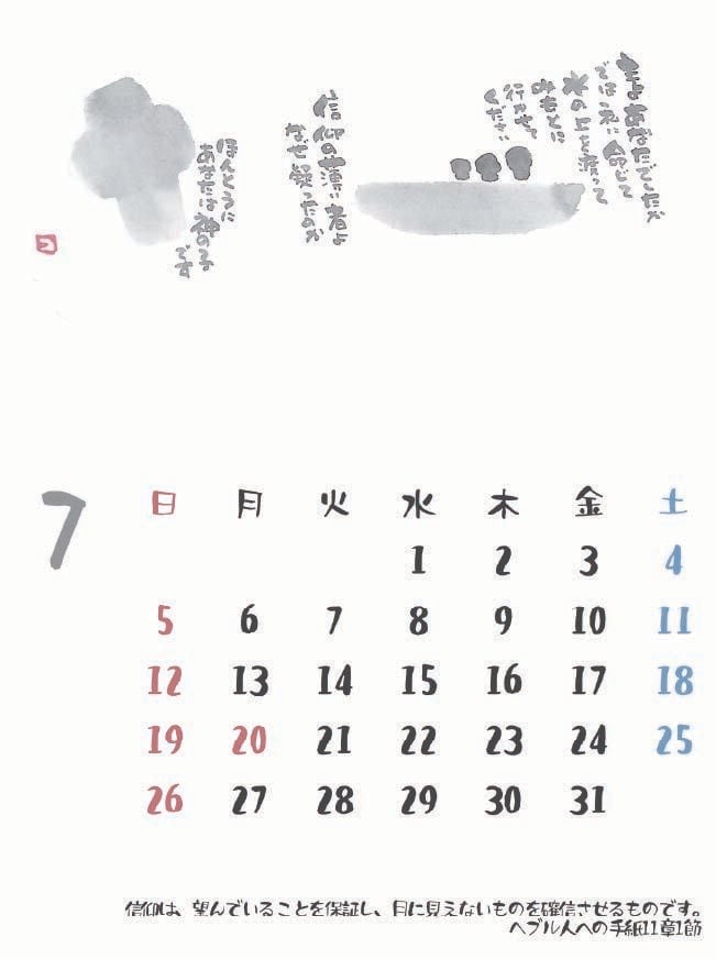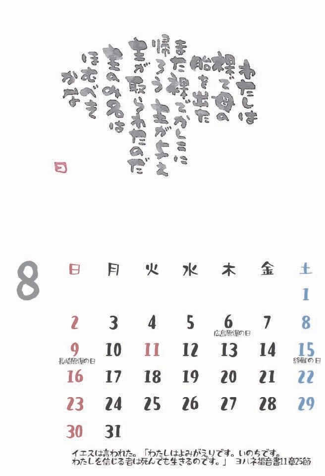 平和を訴え続けた被爆者の墨アーティスト 月下美紀(2025年8月18日逝去)による、聖書の御言葉と祈りの言葉のカレンダーです。